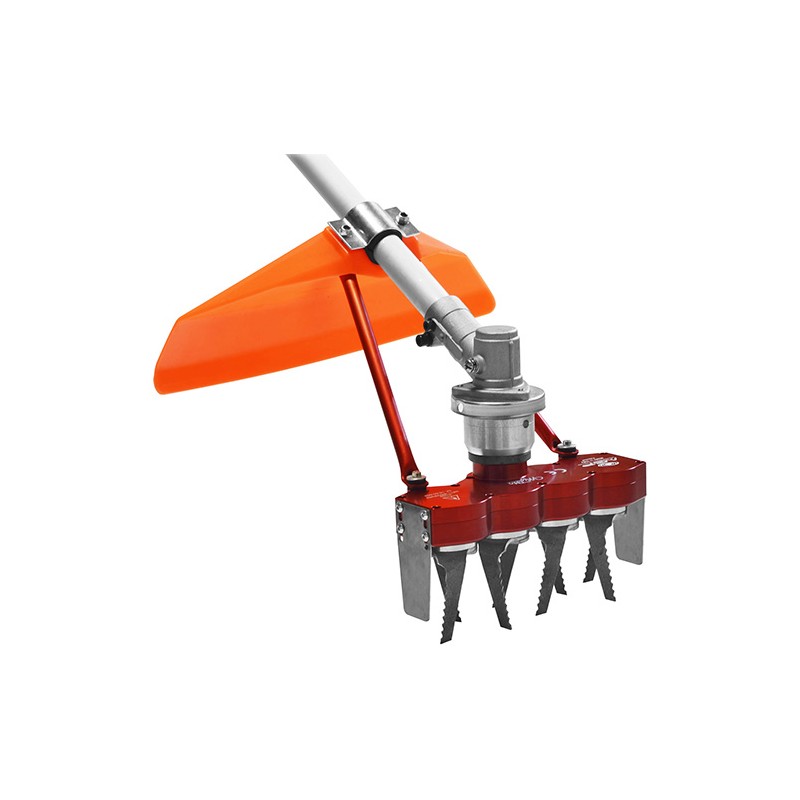 Características: Acessório fabricado em alumínio, com 4 facas duplas, ideal para fresar terreno sem necessitar de uma segunda máquina, tal como uma motoenxada ou motocultivador