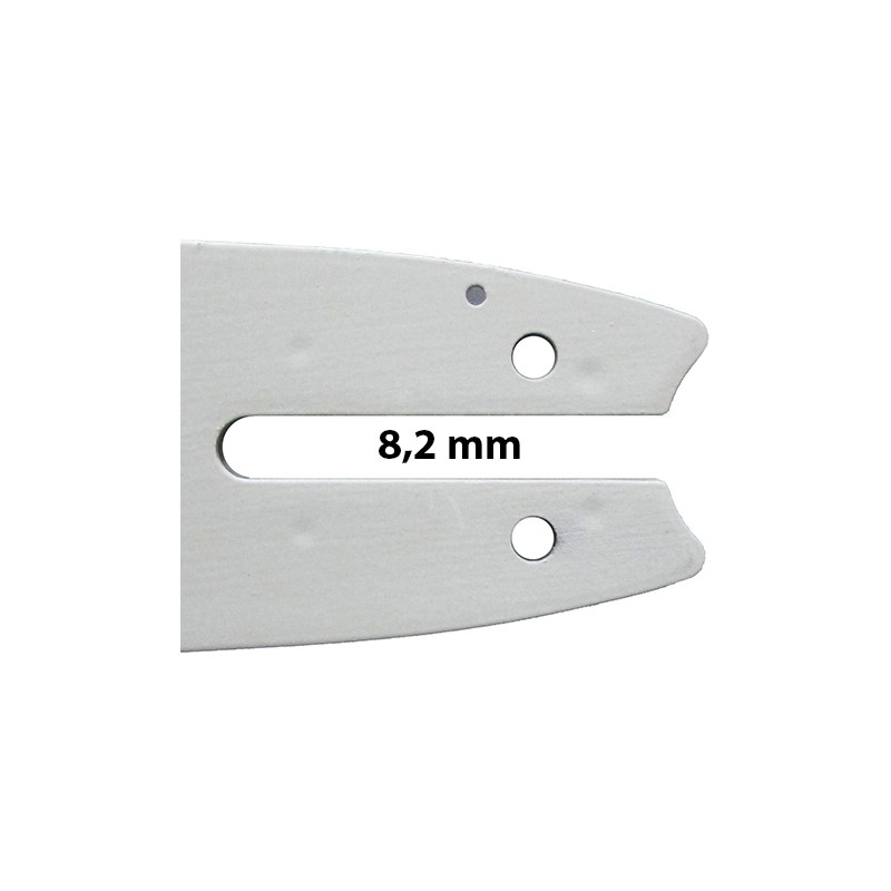 Lâmina Oregon com rolete substituível, ponta com raio de pequena dimensão para ajudar a reduzir o efeito de ricochete, concebida para o uso semi-profissional e para motosserras pequenas ou médias.
