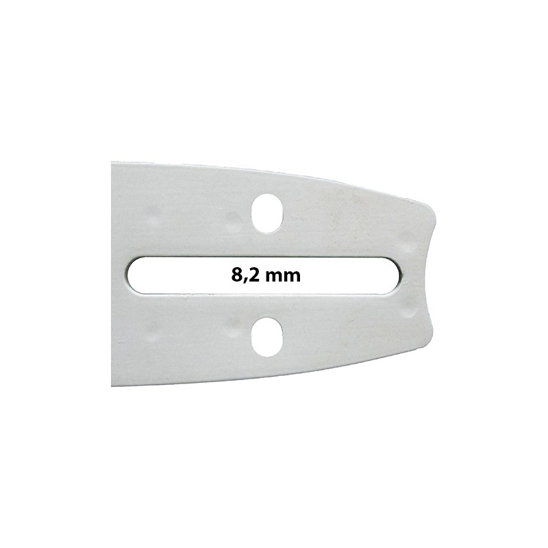 Lâmina Oregon com rolete substituível, ponta com raio de pequena dimensão para ajudar a reduzir o efeito de ricochete, concebida para o uso semi-profissional e para motosserras pequenas ou médias.