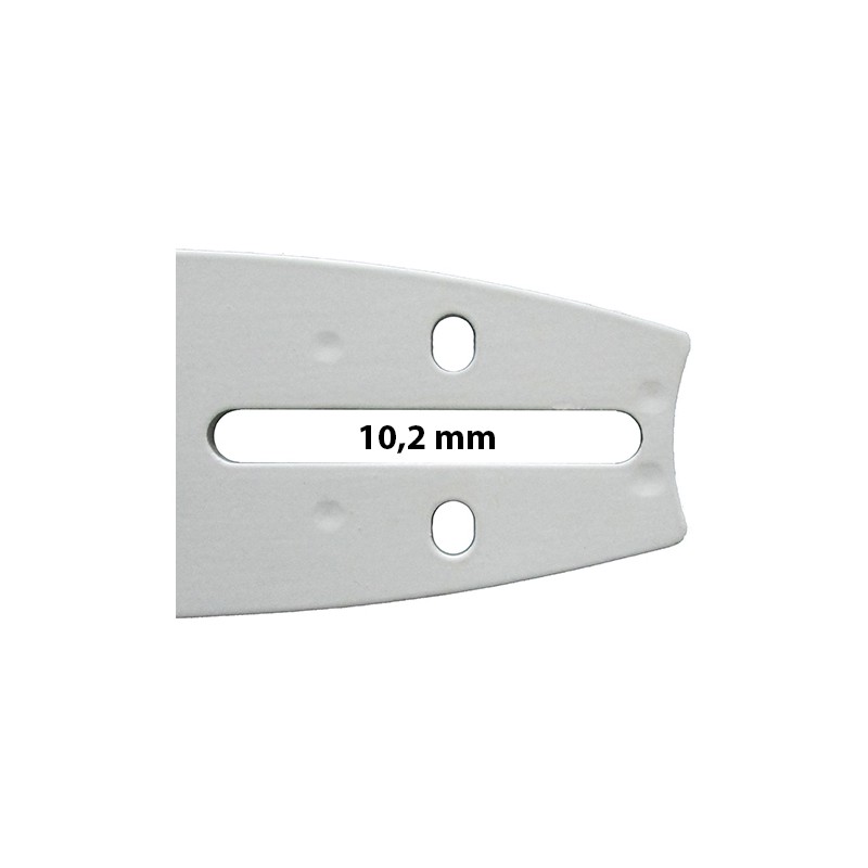 Lâmina Oregon com rolete substituível, ponta com raio de pequena dimensão para ajudar a reduzir o efeito de ricochete, concebida para o uso semi-profissional e para motosserras pequenas ou médias.