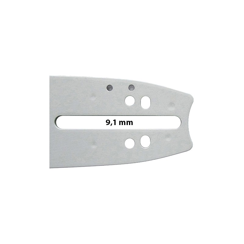 Lâmina Oregon com rolete substituível, ponta com raio de pequena dimensão para ajudar a reduzir o efeito de ricochete, concebida para o uso semi-profissional e para motosserras pequenas ou médias.