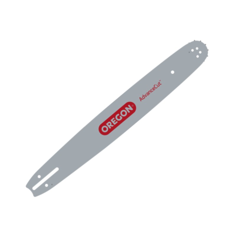 Lâmina Oregon com rolete substituível, ponta com raio de pequena dimensão para ajudar a reduzir o efeito de ricochete, concebida para o uso semi-profissional e para motosserras pequenas ou médias.