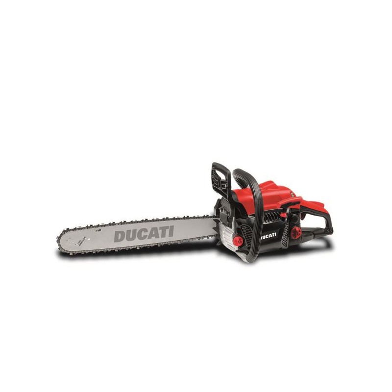 Tem um sistema patenteado de tensão rápida da corrente com um carreto em metal revestido a nylon, e uma lâmina de 40 cm.