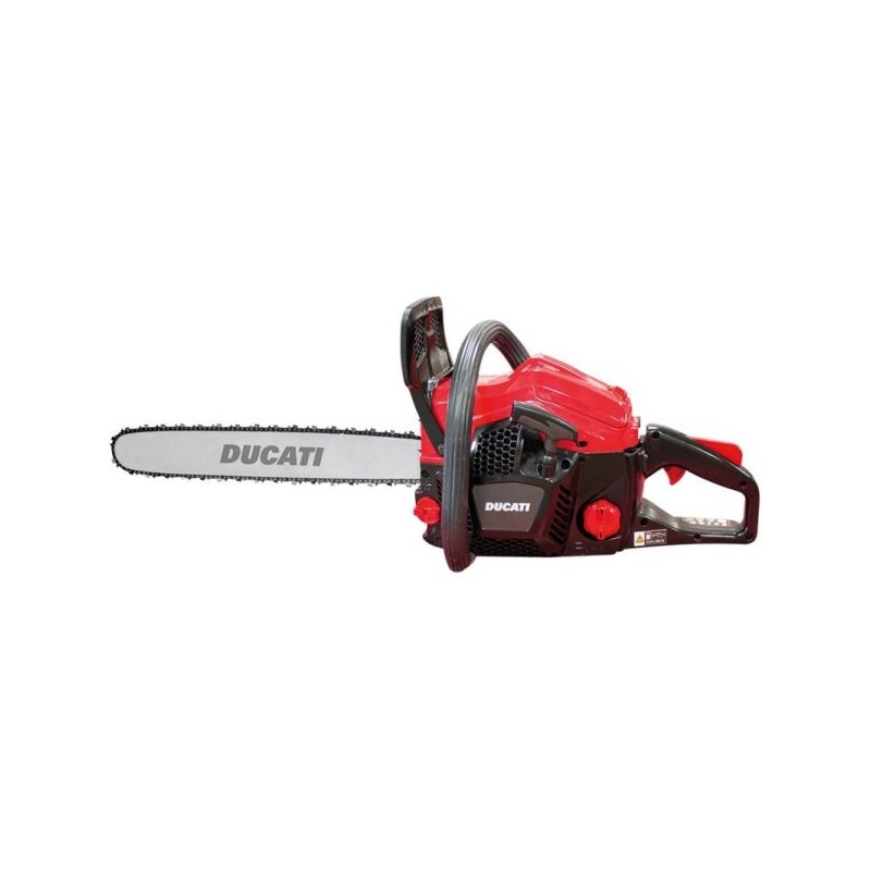 Tem um sistema patenteado de tensão rápida da corrente com um carreto em metal revestido a nylon, e uma lâmina de 40 cm.